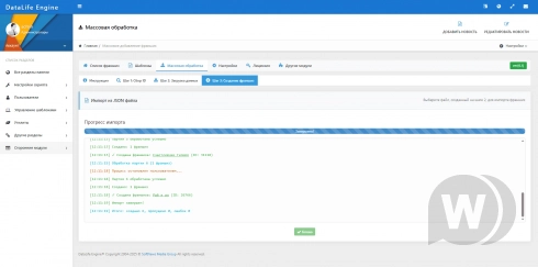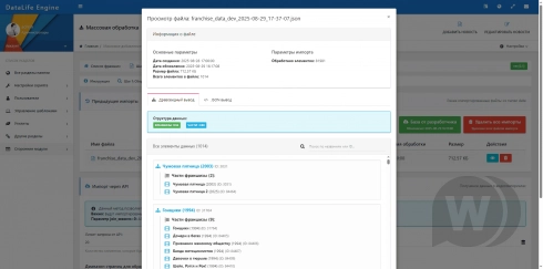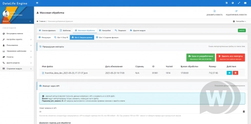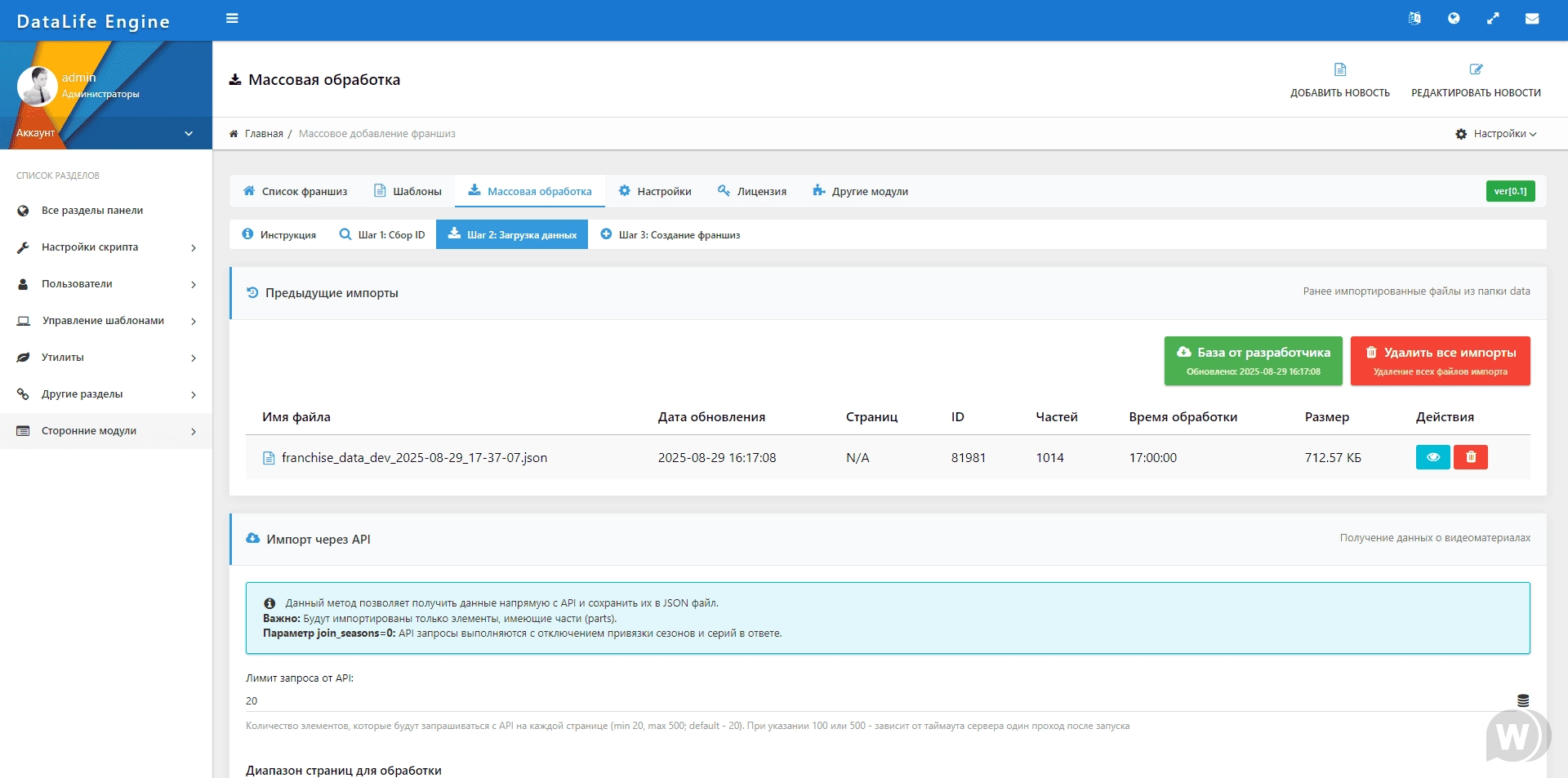 - Массовый импорт в 3 этапа: сбор ID(для сайтов с 20к+фильмов) → загрузка id через API → создание франшиз