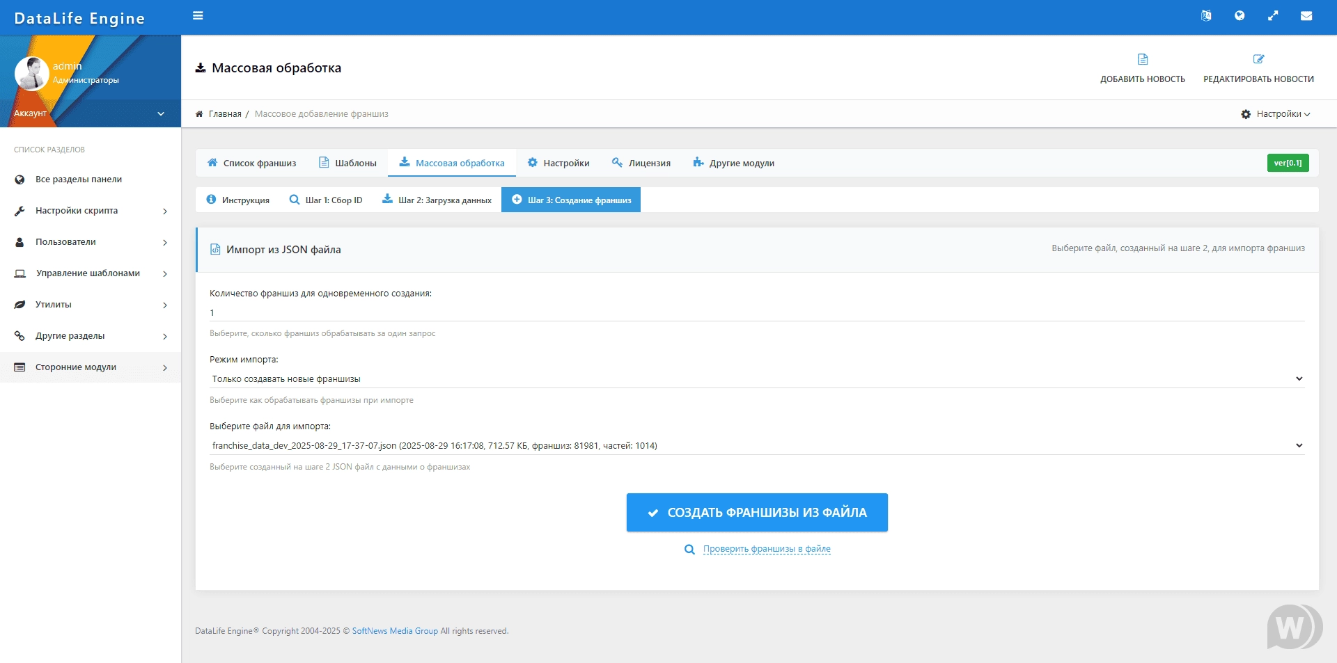 - Ссылка на покупку: Franchise - Менеджер франшиз с API (автовыдача ключа)