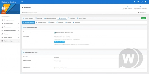 - SEO-функции: генерация ЧПУ, meta-тегов, sitemap