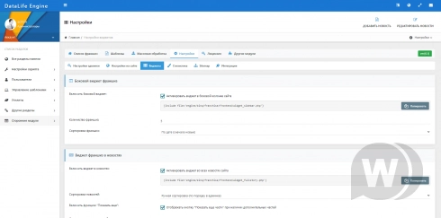 - Шаблоны и виджеты: готовые блоки для страниц, сайдбара, в шаблонах можно подтягивать данные API