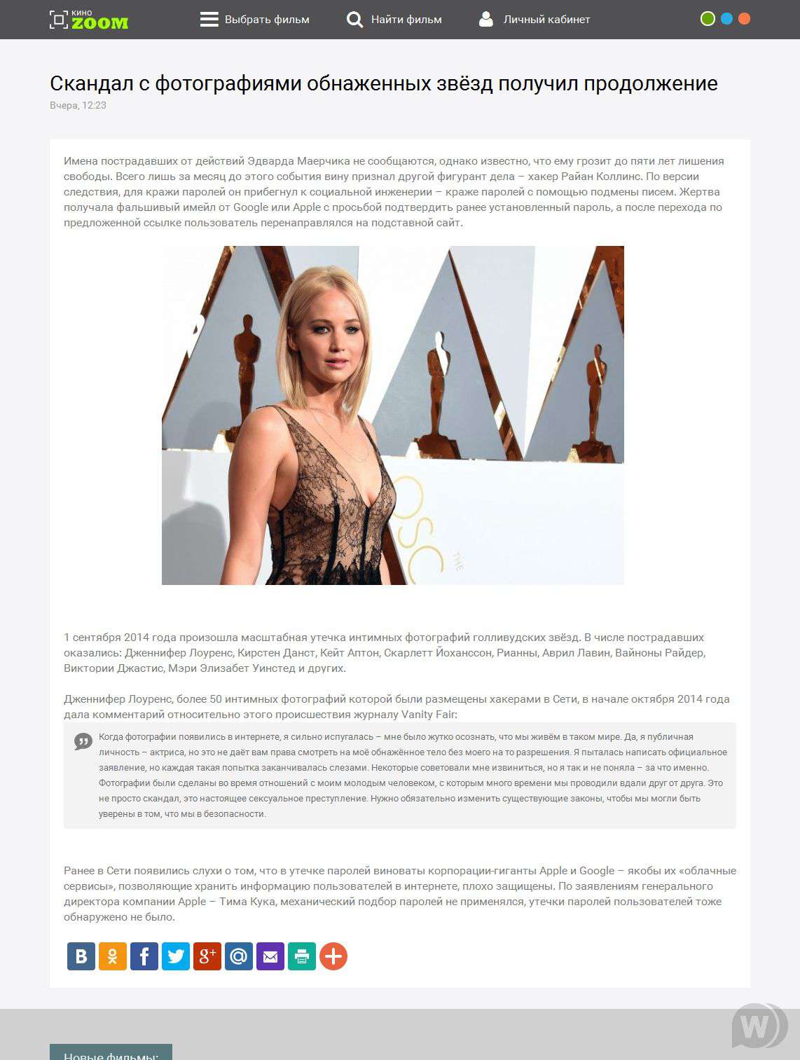 Для категорий Новости кино, Актеры и тд предусмотрен простой вывод полной новости: